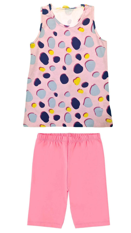 Conjunto infantil Feminino Regata Bolinhas + Bermuda Ciclista - tamanho 10
