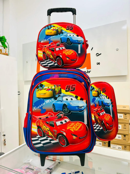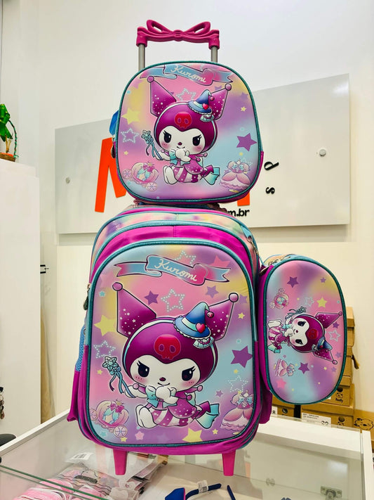 🎒 Kit Escolar Luxo 3 em 1 - Mochila de Rodinhas + Lancheira + Estojo - Volta às aulas