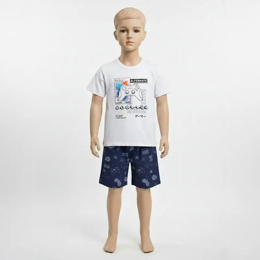 Conjunto Verão Masculino 2 peças Camiseta + Shorts Tactel - do 10 ao 14