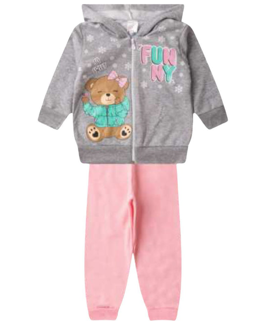 Conjunto 2 peças Feminino Meia Estação - Jaqueta Com Capuz e Calça Moletom Peluciada! Veste do 1 ao 3