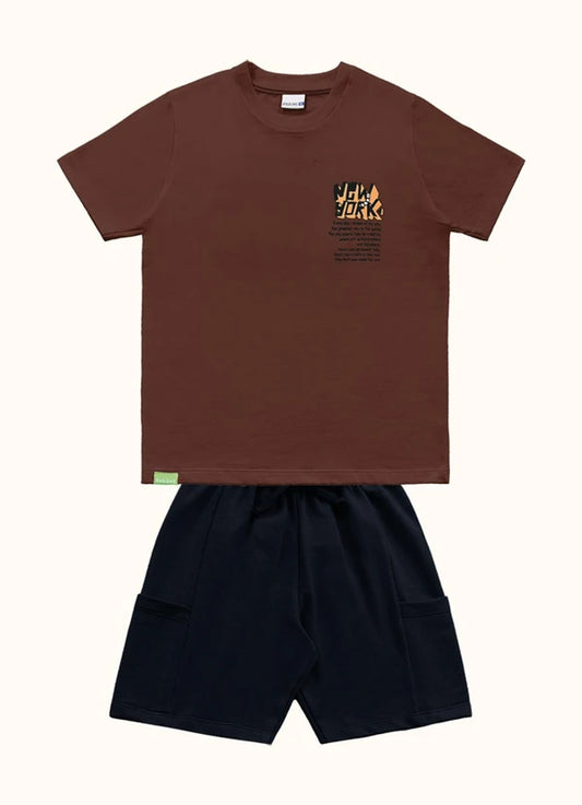 Conjunto 2 Peças Masculino Camiseta e Bermuda - Fakini Kids - Tamanho 2 e 10