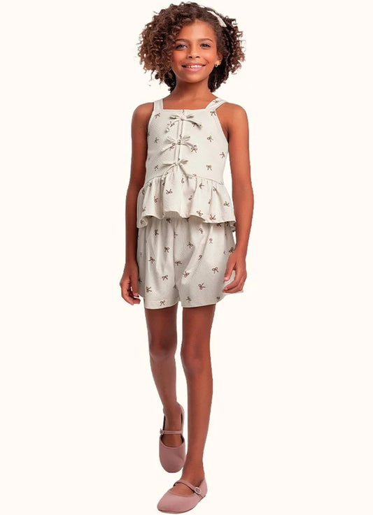 Conjunto 2 Peças Feminino Blusa e Short em malha Favo- Fakini Kids - Tamanho 6