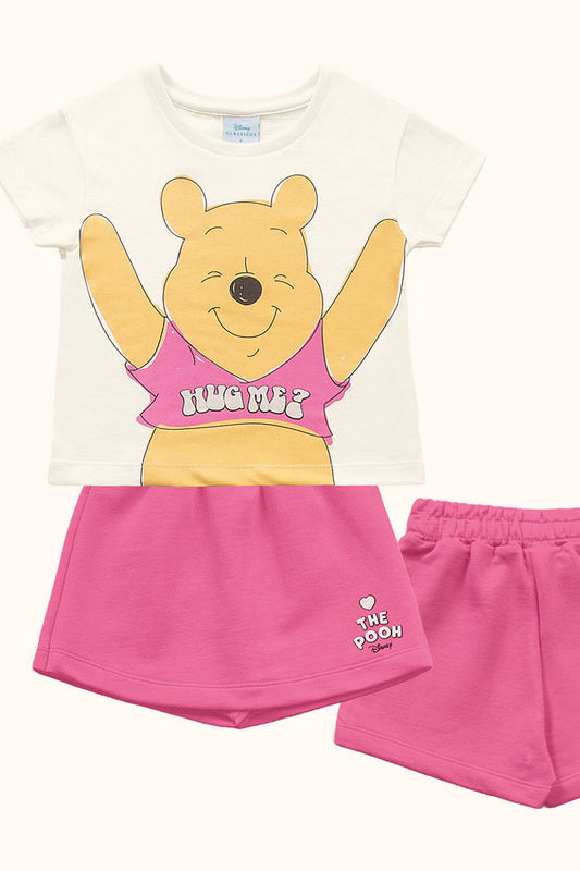 Conjunto 2 Peças Feminino Blusa e Short Saia - Personagem Ursinho Pooh - Fakini Kids - Tamanho 2 e 3