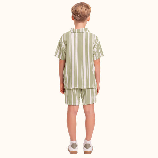 Conjunto 2 Peças Masculino Camisa e Bermuda em tecido Air Flow listrado - Fakini Kids - Tamanho 8 e 10