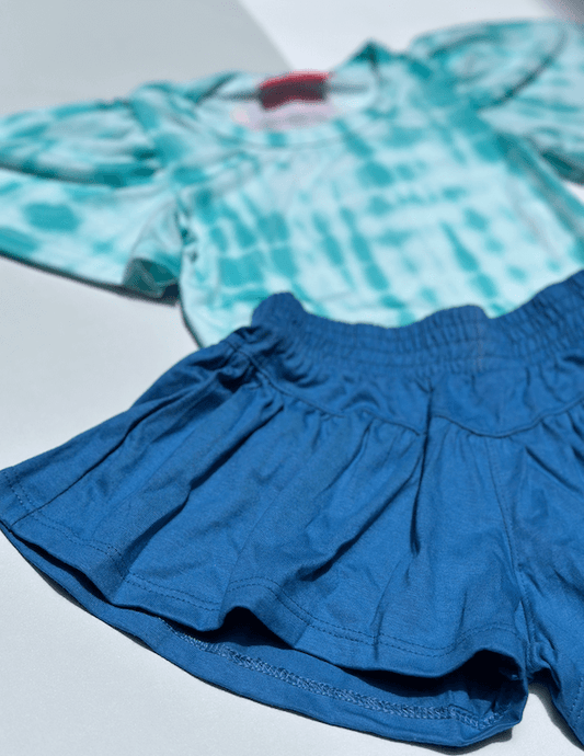 Conjunto Menina Blusinha Tiedye e Aqua e Bermudinha - Serelepe Kids - Tamanho 1