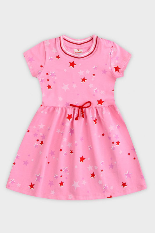 Vestido Brandili Infantil Cotton Estrelas Rosa - Tamanho 1