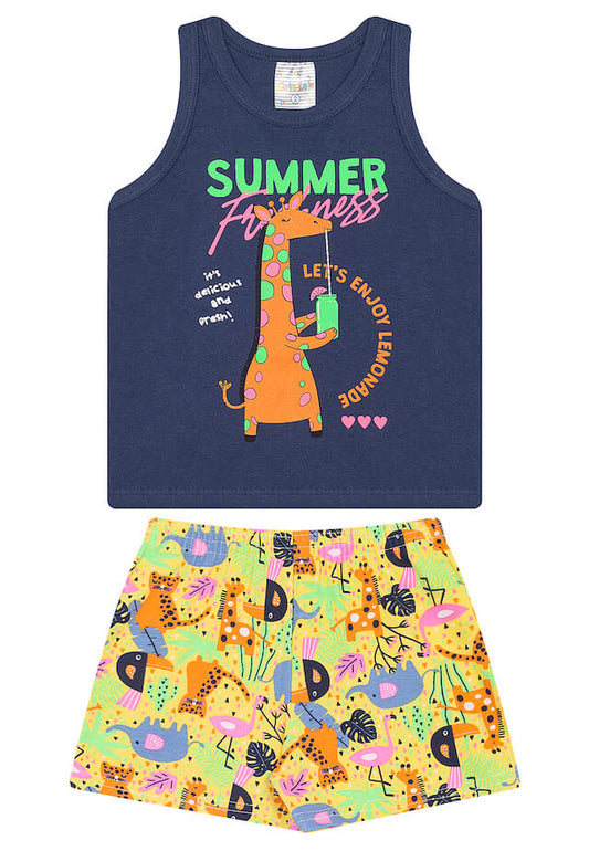 Conjunto Menina Verão Girafa Neon - Tamanho 1 ao 3