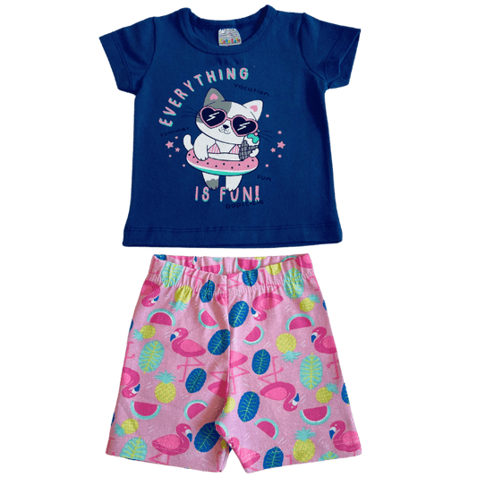 Conjunto Verão Gatinha na Praia - Tamanho 1 ao 3