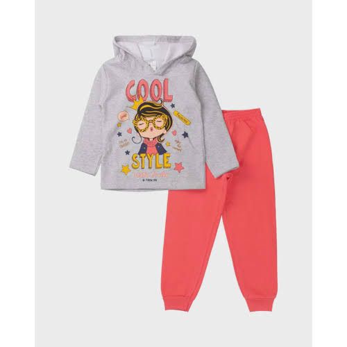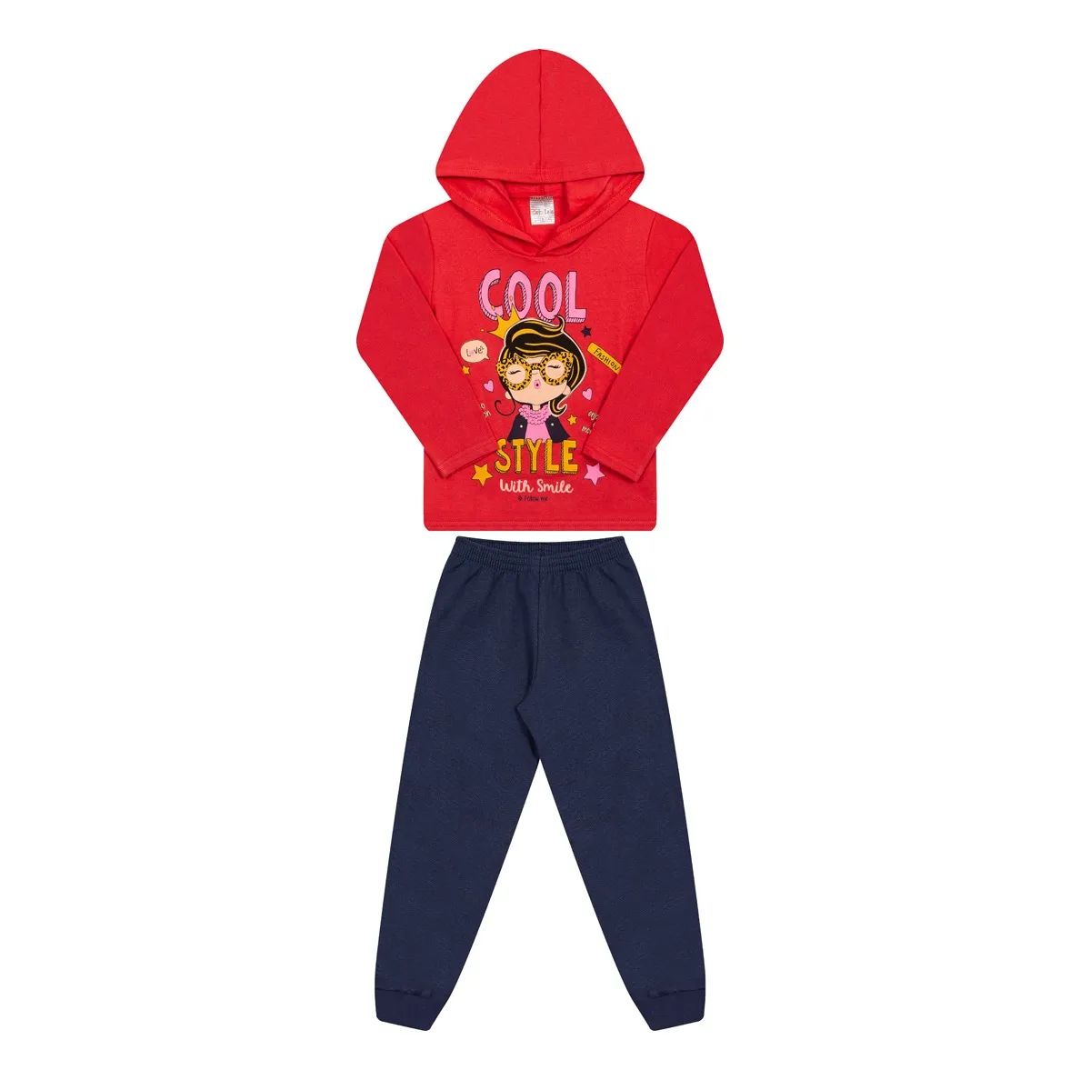 Conjunto infantil de duas peças, composto por blusa com capuz e calça de moletom, especialmente projetado para as meninas. Este conjunto é confeccionado com material de alta qualidade, sendo 100% algodão, garantindo assim uma sensação suave e confortável para a pele delicada das crianças.