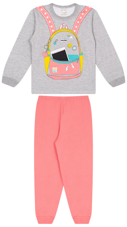 Conjunto infantil de duas peças, composto por blusa e calça de moletom, especialmente projetado para as meninas. Este conjunto é confeccionado com material de alta qualidade, sendo 100% algodão, garantindo assim uma sensação suave e confortável para a pele delicada das crianças.