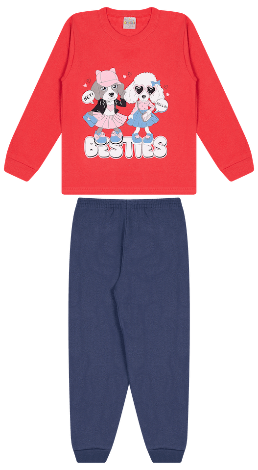 Conjunto infantil de duas peças, composto por blusa e calça de moletom, especialmente projetado para as meninas. Este conjunto é confeccionado com material de alta qualidade, sendo 100% algodão, garantindo assim uma sensação suave e confortável para a pele delicada das crianças.