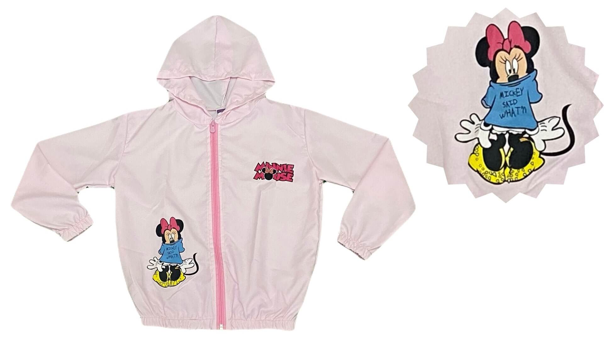 Jaqueta Corta Vento Infantil Feminina Minnie Rosa - Tamanhos 4 e 6